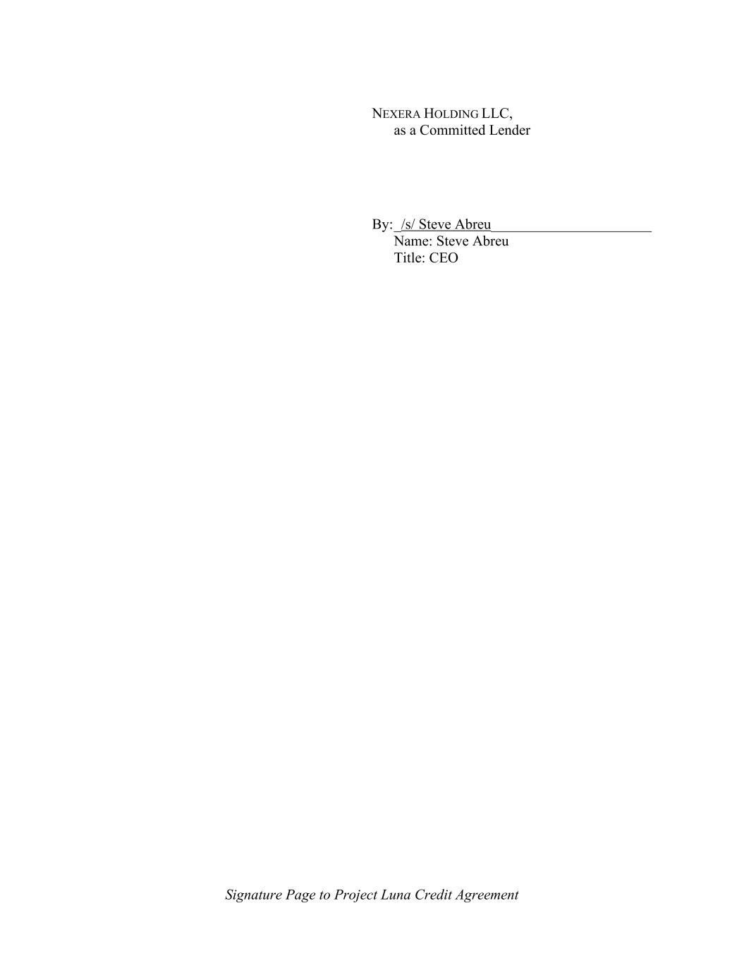 Signature Page to Project Luna Credit Agreement NEXERA HOLDING LLC, as a Committed Lender By: _/s/ Steve Abreu______________________ Name: Steve Abreu Title: CEO