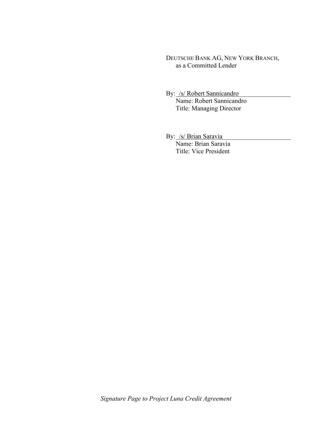 Signature Page to Project Luna Credit Agreement DEUTSCHE BANK AG, NEW YORK BRANCH, as a Committed Lender By: _/s/ Robert Sannicandro________________ Name: Robert Sannicandro Title: Managing Director By: _/s/ Brian Saravia_____________________ Name: Brian Saravia Title: Vice President