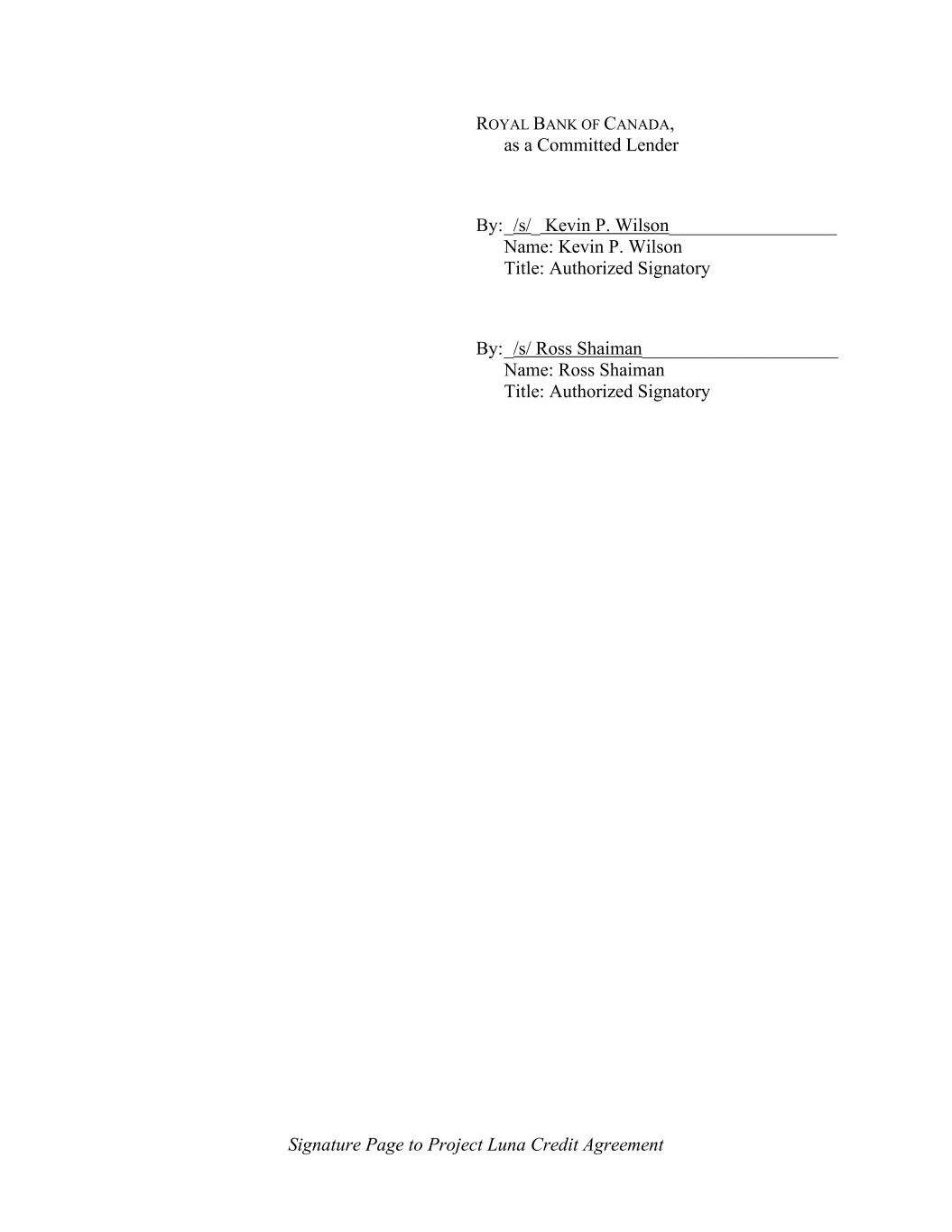 Signature Page to Project Luna Credit Agreement ROYAL BANK OF CANADA, as a Committed Lender By: _/s/_ Kevin P. Wilson__________________ Name: Kevin P. Wilson Title: Authorized Signatory By: _/s/ Ross Shaiman_____________________ Name: Ross Shaiman Title: Authorized Signatory