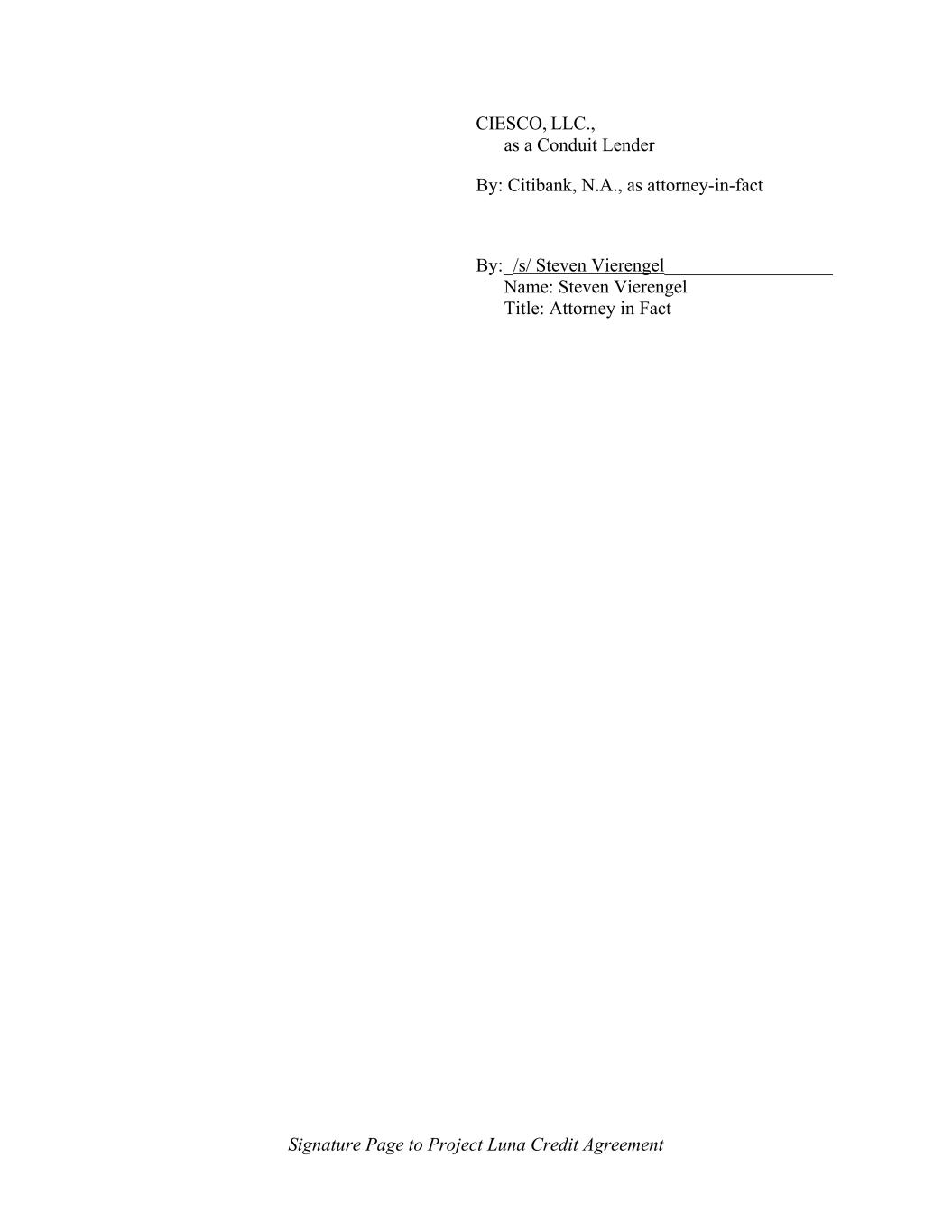 Signature Page to Project Luna Credit Agreement CIESCO, LLC., as a Conduit Lender By: Citibank, N.A., as attorney-in-fact By: _/s/ Steven Vierengel__________________ Name: Steven Vierengel Title: Attorney in Fact