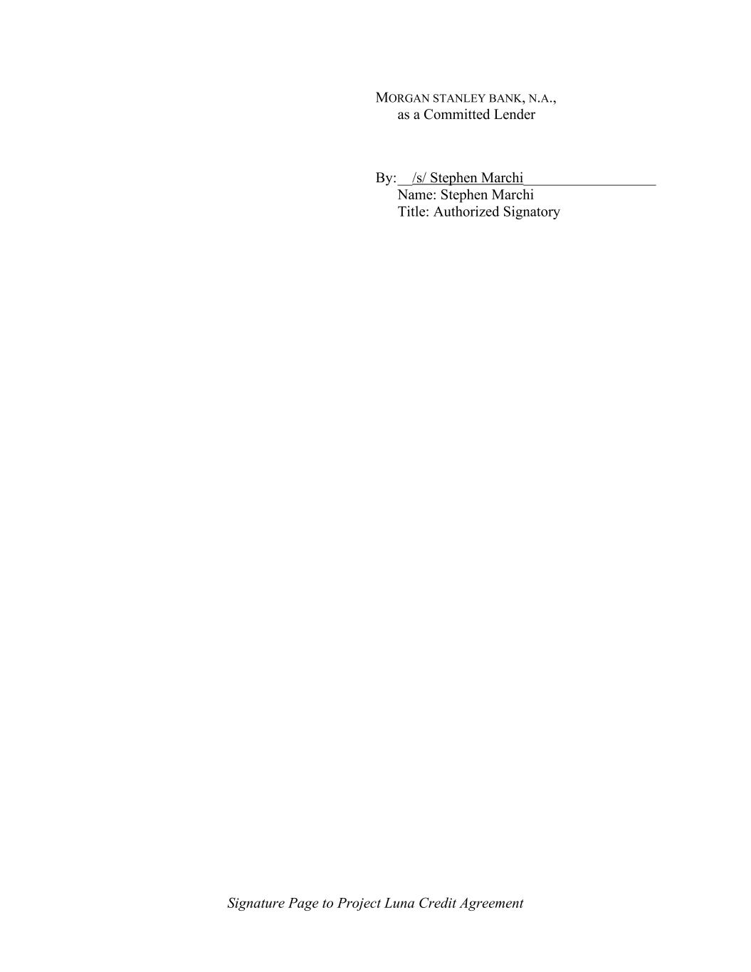 Signature Page to Project Luna Credit Agreement MORGAN STANLEY BANK, N.A., as a Committed Lender By: __/s/ Stephen Marchi__________________ Name: Stephen Marchi Title: Authorized Signatory